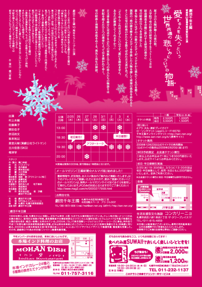 「愛する人を失うという世界共通の悲しみについての物語」の公演チラシ配布情報です。